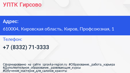 УПТК-Гирсово по адресу 610004, Кировская область, Киров, Профсоюзная, 1 в дальнейшем Организация, размещена в следующих категориях: