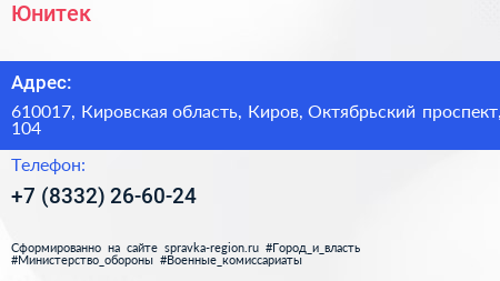 Юнитек по адресу 610017, Кировская область, Киров, Октябрьский проспект, 104 в дальнейшем Организация, размещена в следующих категориях: