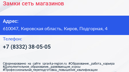 Замки, сеть магазинов по адресу 610047, Кировская область, Киров, Подгорная, 4 в дальнейшем Организация, размещена в следующих категориях: