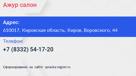 Ажур, салон по адресу 610017, Кировская область, Киров, Воровского, 44 в дальнейшем Организация, размещена в следующих категориях: