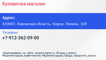 Булавочка, магазин по адресу 610007, Кировская область, Киров, Ленина, 169 в дальнейшем Организация, размещена в следующих категориях: