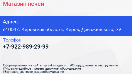 Магазин печей по адресу 610047, Кировская область, Киров, Дзержинского, 79 в дальнейшем Организация, размещена в следующих категориях: