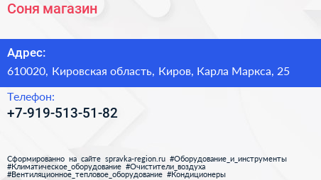 Соня, магазин по адресу 610020, Кировская область, Киров, Карла Маркса, 25 в дальнейшем Организация, размещена в следующих категориях: