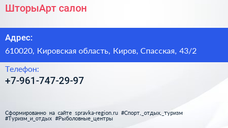 ШторыАрт, салон по адресу 610020, Кировская область, Киров, Спасская, 43/2 в дальнейшем Организация, размещена в следующих категориях: