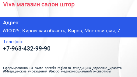 Viva, магазин-салон штор по адресу 610025, Кировская область, Киров, Мостовицкая, 7 в дальнейшем Организация, размещена в следующих категориях: