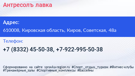 Антресолъ, лавка по адресу 610008, Кировская область, Киров, Советская, 48а в дальнейшем Организация, размещена в следующих категориях: