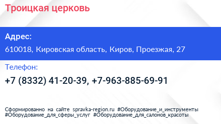 Троицкая церковь по адресу 610018, Кировская область, Киров, Проезжая, 27 в дальнейшем Организация, размещена в следующих категориях: