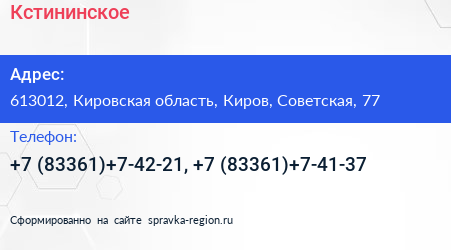 Кстининское по адресу 613012, Кировская область, Киров, Советская, 77 в дальнейшем Организация, размещена в следующих категориях: