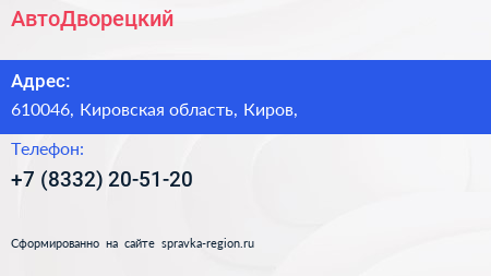 АвтоДворецкий по адресу 610046, Кировская область, Киров, в дальнейшем Организация, размещена в следующих категориях: