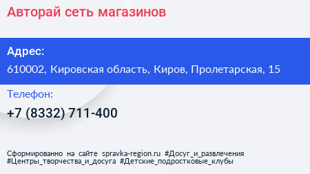 Авторай, сеть магазинов по адресу 610002, Кировская область, Киров, Пролетарская, 15 в дальнейшем Организация, размещена в следующих категориях: