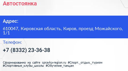 Автостоянка по адресу 610047, Кировская область, Киров, проезд Можайского, 1/1 в дальнейшем Организация, размещена в следующих категориях: