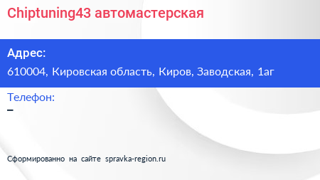 Chiptuning43, автомастерская по адресу 610004, Кировская область, Киров, Заводская, 1аг в дальнейшем Организация, размещена в следующих категориях: