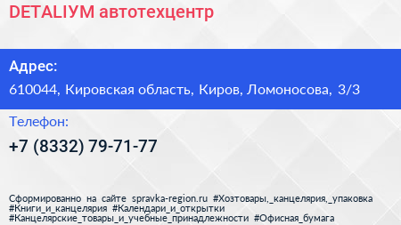 DETALIУМ, автотехцентр по адресу 610044, Кировская область, Киров, Ломоносова, 3/3 в дальнейшем Организация, размещена в следующих категориях: