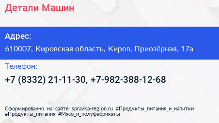 Детали Машин по адресу 610007, Кировская область, Киров, Приозёрная, 17а в дальнейшем Организация, размещена в следующих категориях: