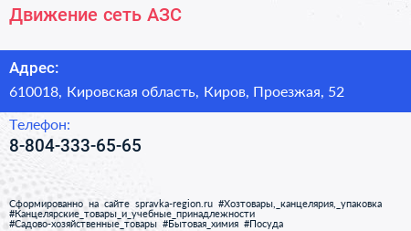 Движение, сеть АЗС по адресу 610018, Кировская область, Киров, Проезжая, 52 в дальнейшем Организация, размещена в следующих категориях: