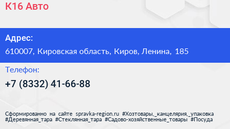 К16-Авто по адресу 610007, Кировская область, Киров, Ленина, 185 в дальнейшем Организация, размещена в следующих категориях: