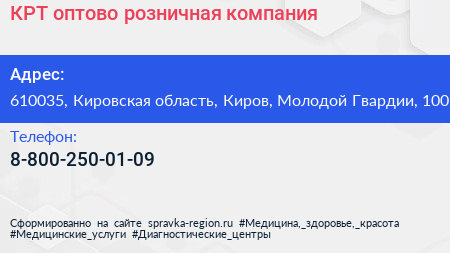 КРТ, оптово-розничная компания по адресу 610035, Кировская область, Киров, Молодой Гвардии, 100 в дальнейшем Организация, размещена в следующих категориях: