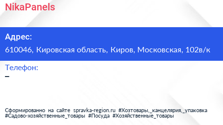 NikaPanels по адресу 610046, Кировская область, Киров, Московская, 102в/к в дальнейшем Организация, размещена в следующих категориях: