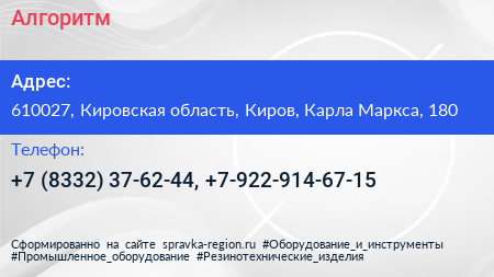 Алгоритм по адресу 610027, Кировская область, Киров, Карла Маркса, 180 в дальнейшем Организация, размещена в следующих категориях: