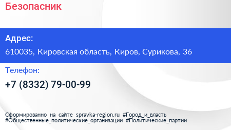 Безопасник по адресу 610035, Кировская область, Киров, Сурикова, 36 в дальнейшем Организация, размещена в следующих категориях:
