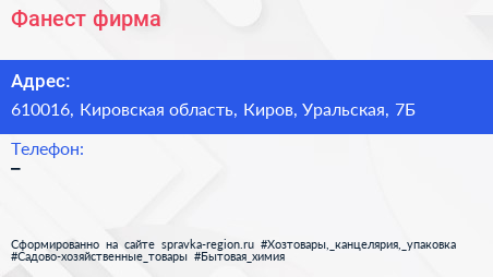 Фанест, фирма по адресу 610016, Кировская область, Киров, Уральская, 7Б в дальнейшем Организация, размещена в следующих категориях: