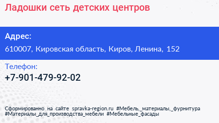 Ладошки, сеть детских центров по адресу 610007, Кировская область, Киров, Ленина, 152 в дальнейшем Организация, размещена в следующих категориях: