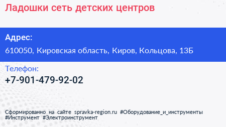 Ладошки, сеть детских центров по адресу 610050, Кировская область, Киров, Кольцова, 13Б в дальнейшем Организация, размещена в следующих категориях:
