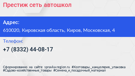 Престиж, сеть автошкол по адресу 610020, Кировская область, Киров, Московская, 4 в дальнейшем Организация, размещена в следующих категориях: