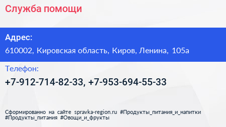 Служба помощи по адресу 610002, Кировская область, Киров, Ленина, 105а в дальнейшем Организация, размещена в следующих категориях: