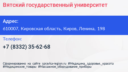 Вятский государственный университет по адресу 610007, Кировская область, Киров, Ленина, 198 в дальнейшем Организация, размещена в следующих категориях: