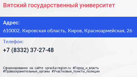 Вятский государственный университет по адресу 610002, Кировская область, Киров, Красноармейская, 26 в дальнейшем Организация, размещена в следующих категориях:
