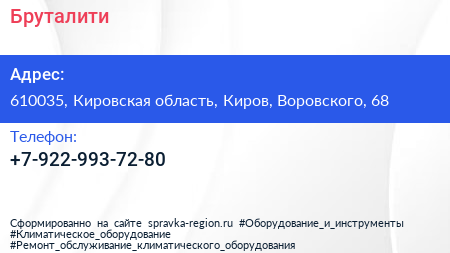 Бруталити по адресу 610035, Кировская область, Киров, Воровского, 68 в дальнейшем Организация, размещена в следующих категориях:
