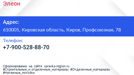 Элеон по адресу 610005, Кировская область, Киров, Профсоюзная, 78 в дальнейшем Организация, размещена в следующих категориях: