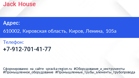 Jack House по адресу 610002, Кировская область, Киров, Ленина, 105а в дальнейшем Организация, размещена в следующих категориях: