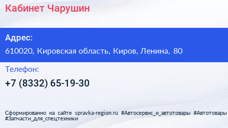 Кабинет Чарушин по адресу 610020, Кировская область, Киров, Ленина, 80 в дальнейшем Организация, размещена в следующих категориях: