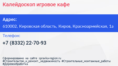 Калейдоскоп, игровое кафе по адресу 610002, Кировская область, Киров, Красноармейская, 1а в дальнейшем Организация, размещена в следующих категориях: