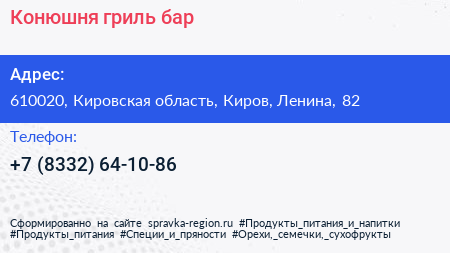 Конюшня, гриль-бар по адресу 610020, Кировская область, Киров, Ленина, 82 в дальнейшем Организация, размещена в следующих категориях: