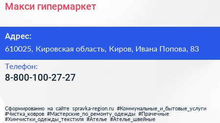 Макси, гипермаркет по адресу 610025, Кировская область, Киров, Ивана Попова, 83 в дальнейшем Организация, размещена в следующих категориях: