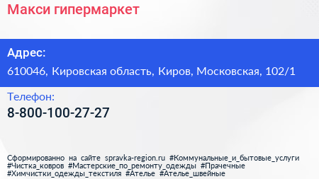 Макси, гипермаркет по адресу 610046, Кировская область, Киров, Московская, 102/1 в дальнейшем Организация, размещена в следующих категориях: