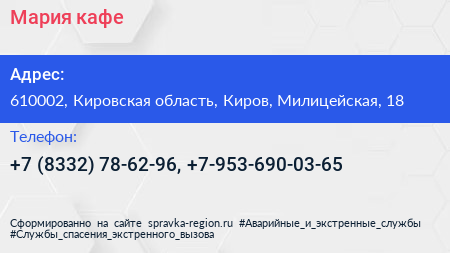 Мария, кафе по адресу 610002, Кировская область, Киров, Милицейская, 18 в дальнейшем Организация, размещена в следующих категориях:
