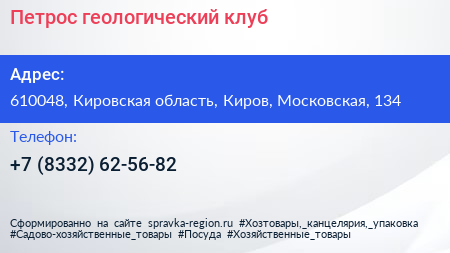 Петрос, геологический клуб по адресу 610048, Кировская область, Киров, Московская, 134 в дальнейшем Организация, размещена в следующих категориях: