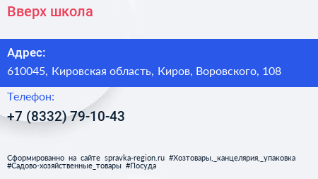 Вверх, школа по адресу 610045, Кировская область, Киров, Воровского, 108 в дальнейшем Организация, размещена в следующих категориях: