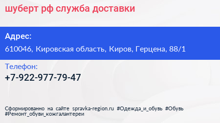 шуберт.рф, служба доставки по адресу 610046, Кировская область, Киров, Герцена, 88/1 в дальнейшем Организация, размещена в следующих категориях: