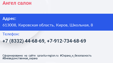 Ангел, салон по адресу 613008, Кировская область, Киров, Школьная, 8 в дальнейшем Организация, размещена в следующих категориях: