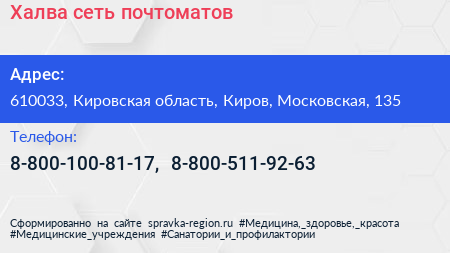 Халва, сеть почтоматов по адресу 610033, Кировская область, Киров, Московская, 135 в дальнейшем Организация, размещена в следующих категориях: