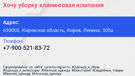 Хочу уборку, клининговая компания по адресу 610002, Кировская область, Киров, Ленина, 105а в дальнейшем Организация, размещена в следующих категориях: