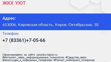 ЖКХ УЮТ по адресу 613006, Кировская область, Киров, Октябрьская, 1Б в дальнейшем Организация, размещена в следующих категориях: