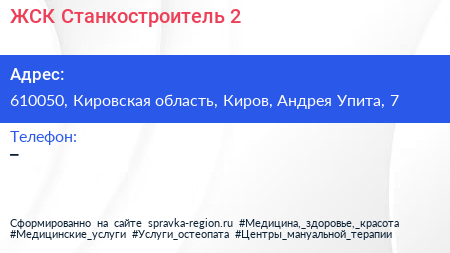ЖСК Станкостроитель-2 по адресу 610050, Кировская область, Киров, Андрея Упита, 7 в дальнейшем Организация, размещена в следующих категориях: