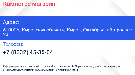 Камнетёс, магазин по адресу 610005, Кировская область, Киров, Октябрьский проспект, 93 в дальнейшем Организация, размещена в следующих категориях: