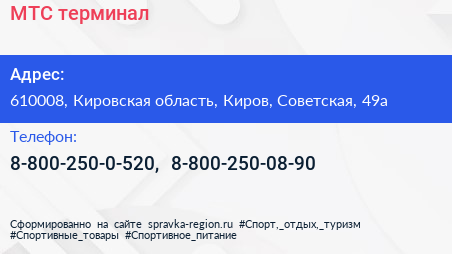 МТС, терминал по адресу 610008, Кировская область, Киров, Советская, 49а в дальнейшем Организация, размещена в следующих категориях:
